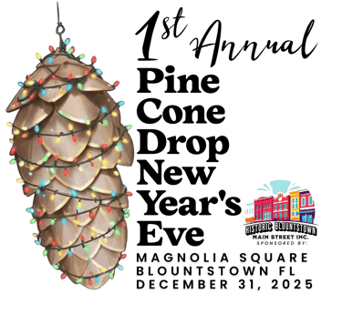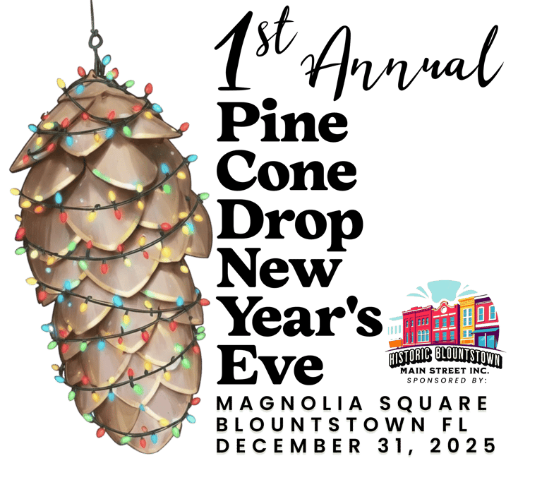 Ring in 2026 with a brand-new hometown tradition! Join us at Magnolia Square in Blountstown, FL this New Year’s Eve for the 1st Annual Pine Cone Drop—a celebration rooted in community, laughter, music, and small-town charm.